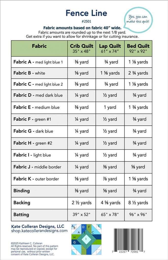 Bring fresh, cool energy to your quilting with Fence Line, a modern geometric quilt pattern that blends crisp angles, layered color, and eye-catching movement. This design features repeating blocks that create a luminous, almost kaleidoscopic effect—perfect for anyone who loves bold shapes and clean, contemporary style.